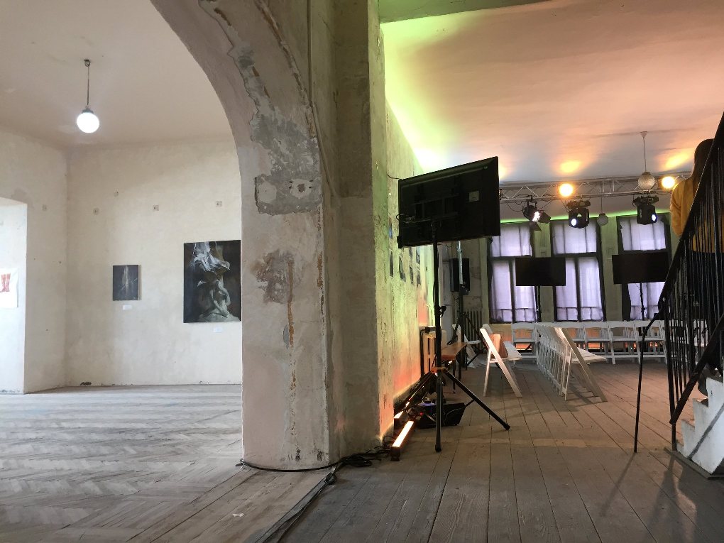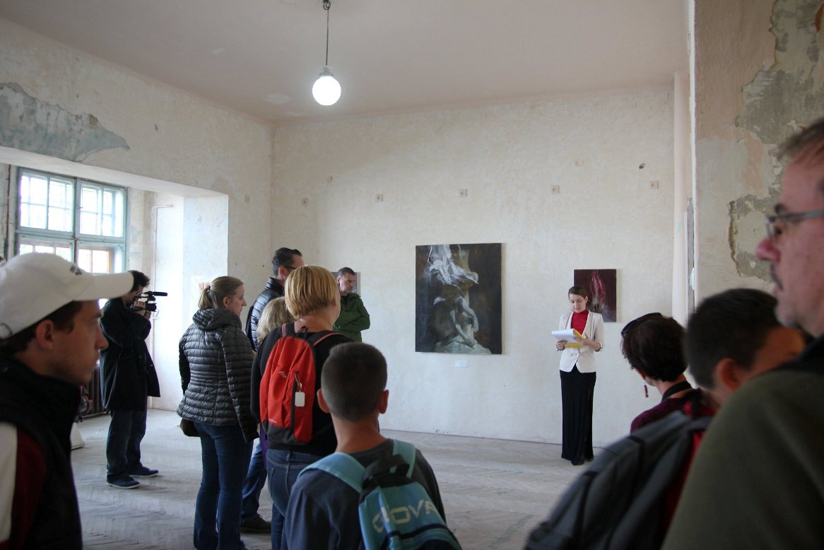 In the grand hall of the castle, transformed into a gallery, visitors will have the chance to admire the works of the exhibiting artists.